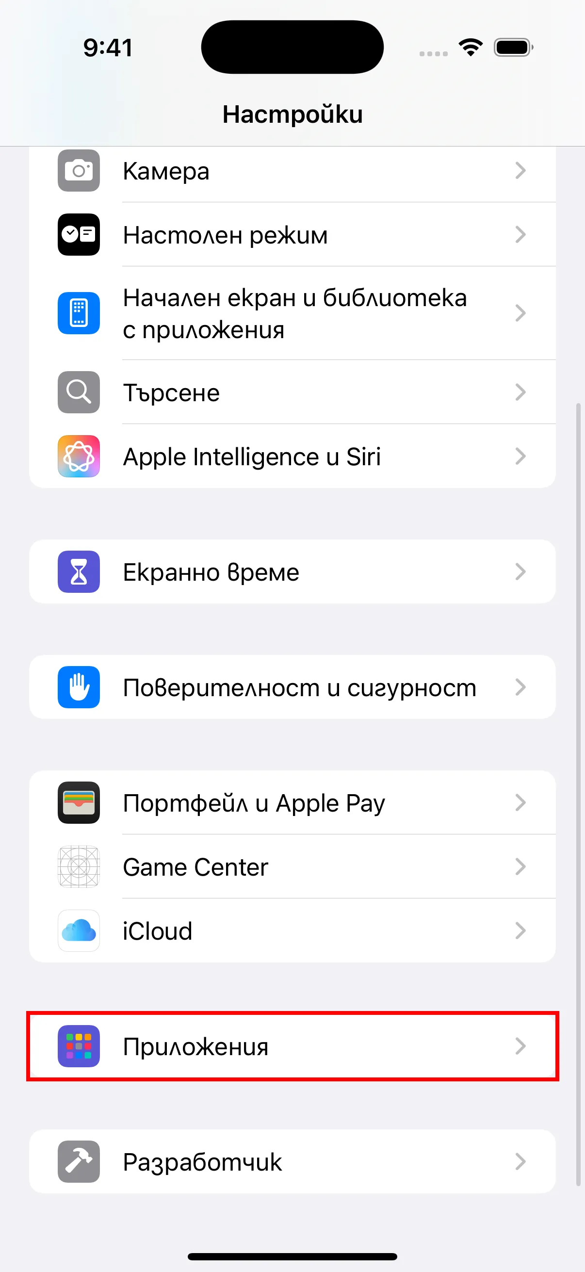 - Отворете приложението “Настройки” на вашия iPhone, превъртете надолу, за да намерите “Приложения” и натиснете, за да влезете.