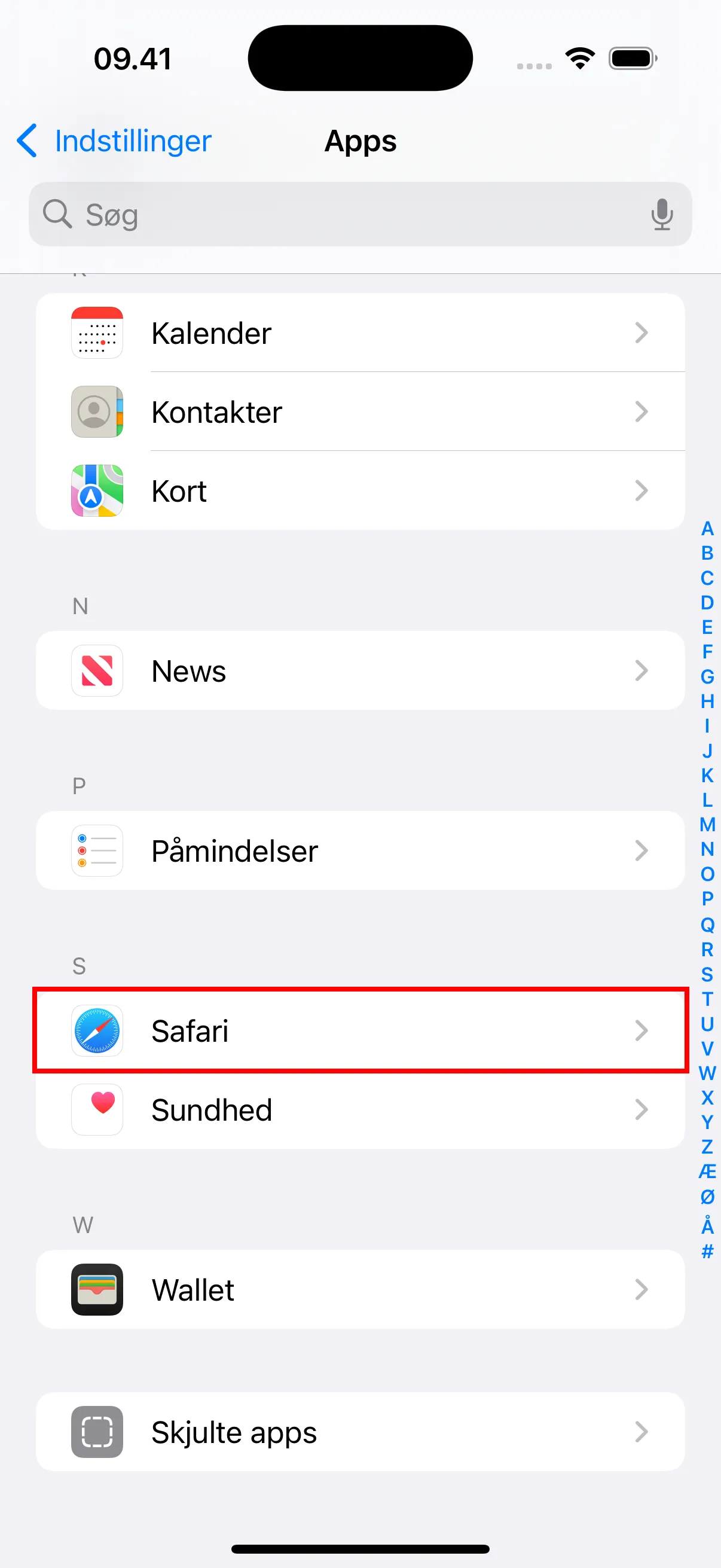 - Find og tryk på “Safari” i app-listen.