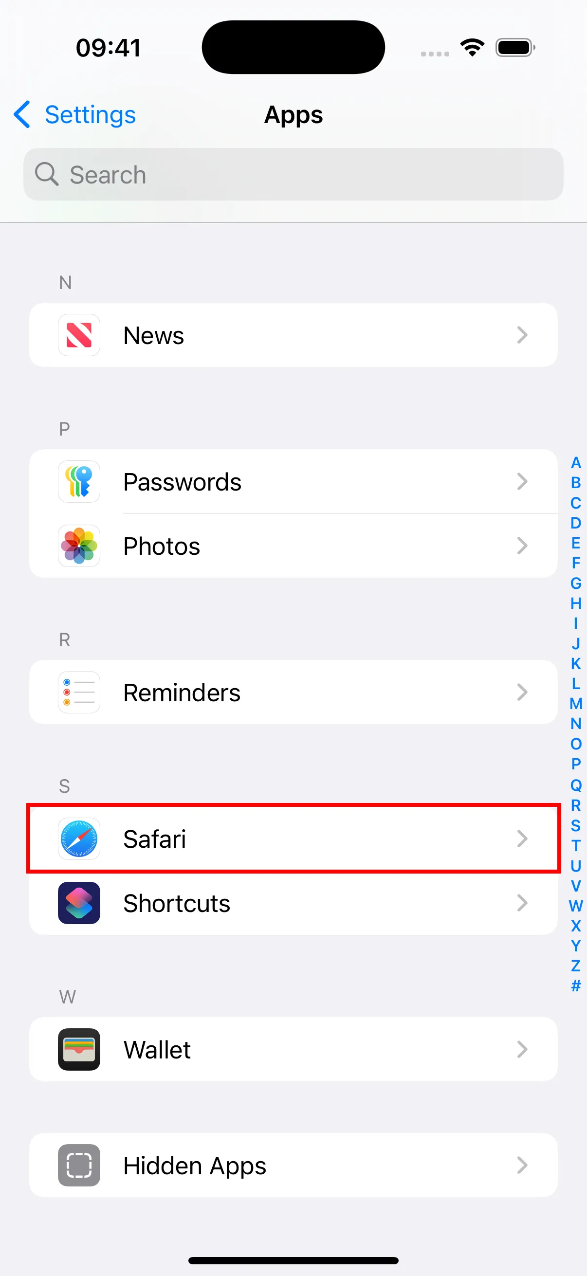 - Leia ja puuduta “Safari” rakenduste loendis.