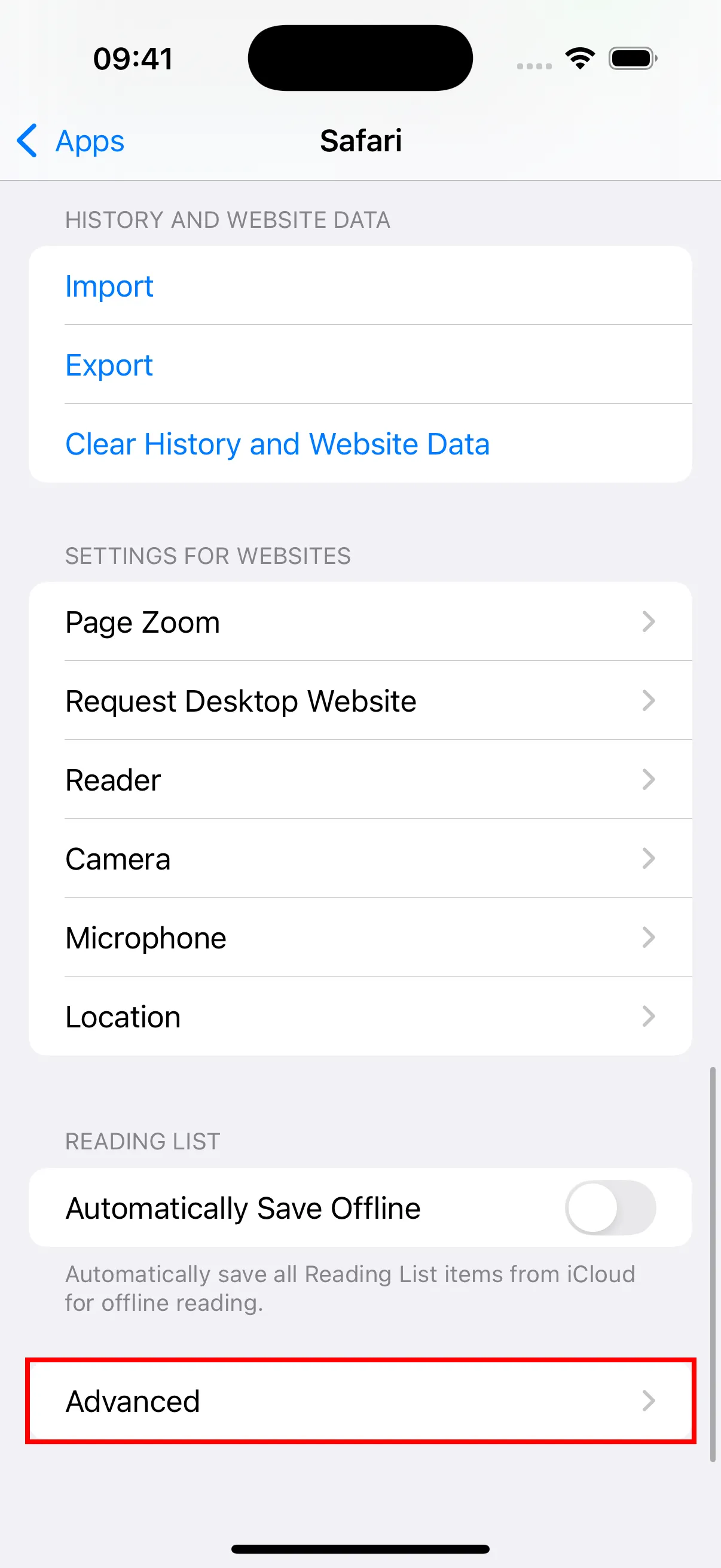 - Mine tagasi Safari seadetesse ja puuduta “Laiendused.”