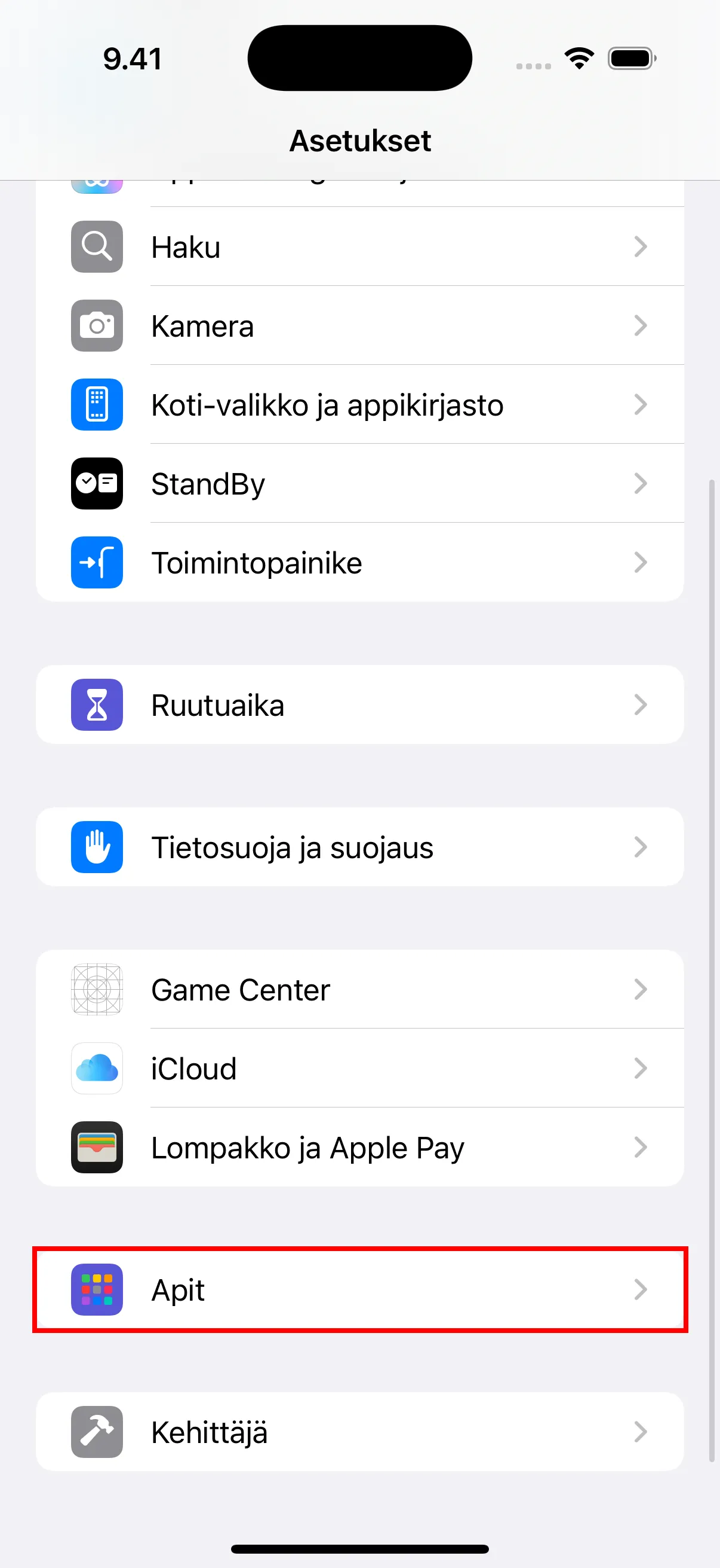 - Avaa iPhonesi “Asetukset”-sovellus, vierita alas loytaaksesi “Apit” ja napauta avataksesi.