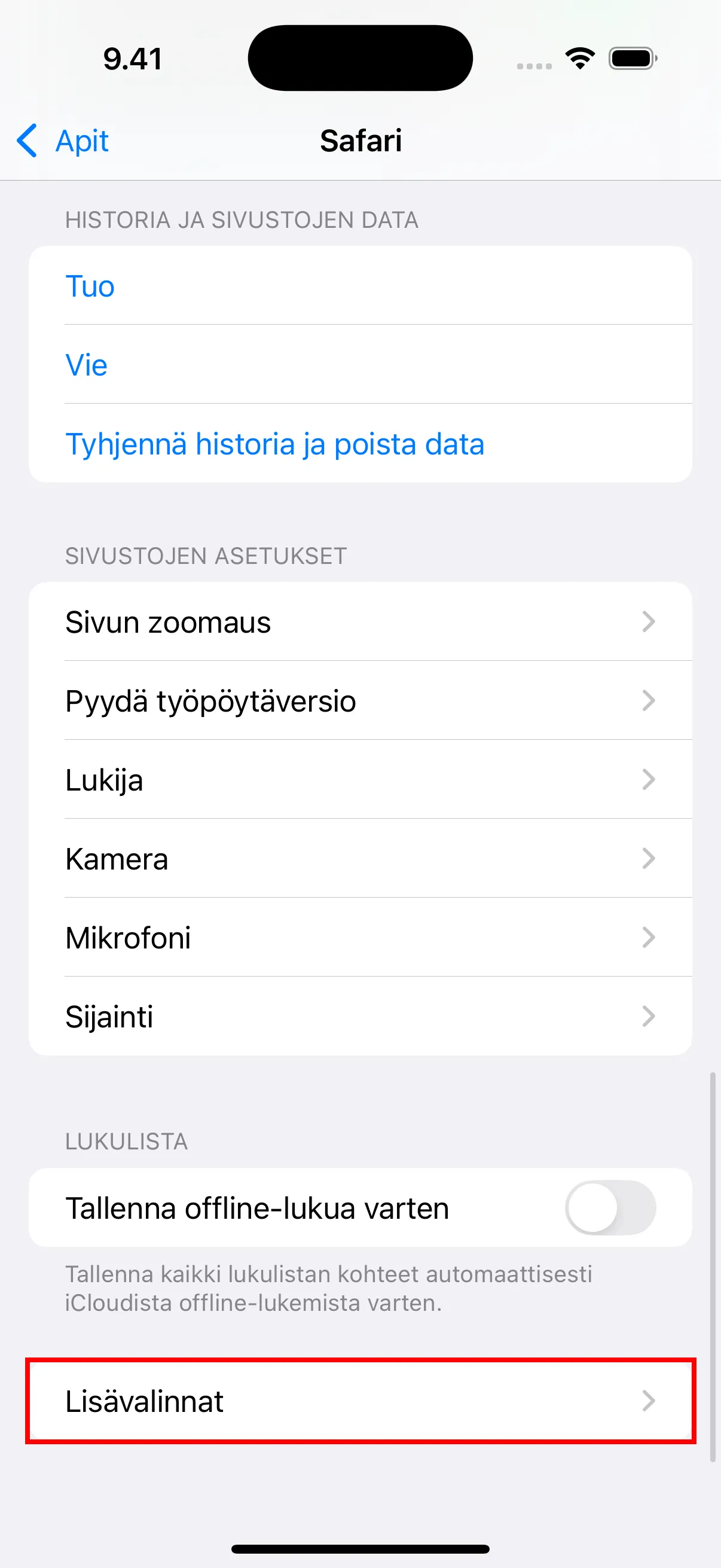 - Vierita alas ja napauta “Lisävalinnat” paastaksesi lisaasetuksiin.