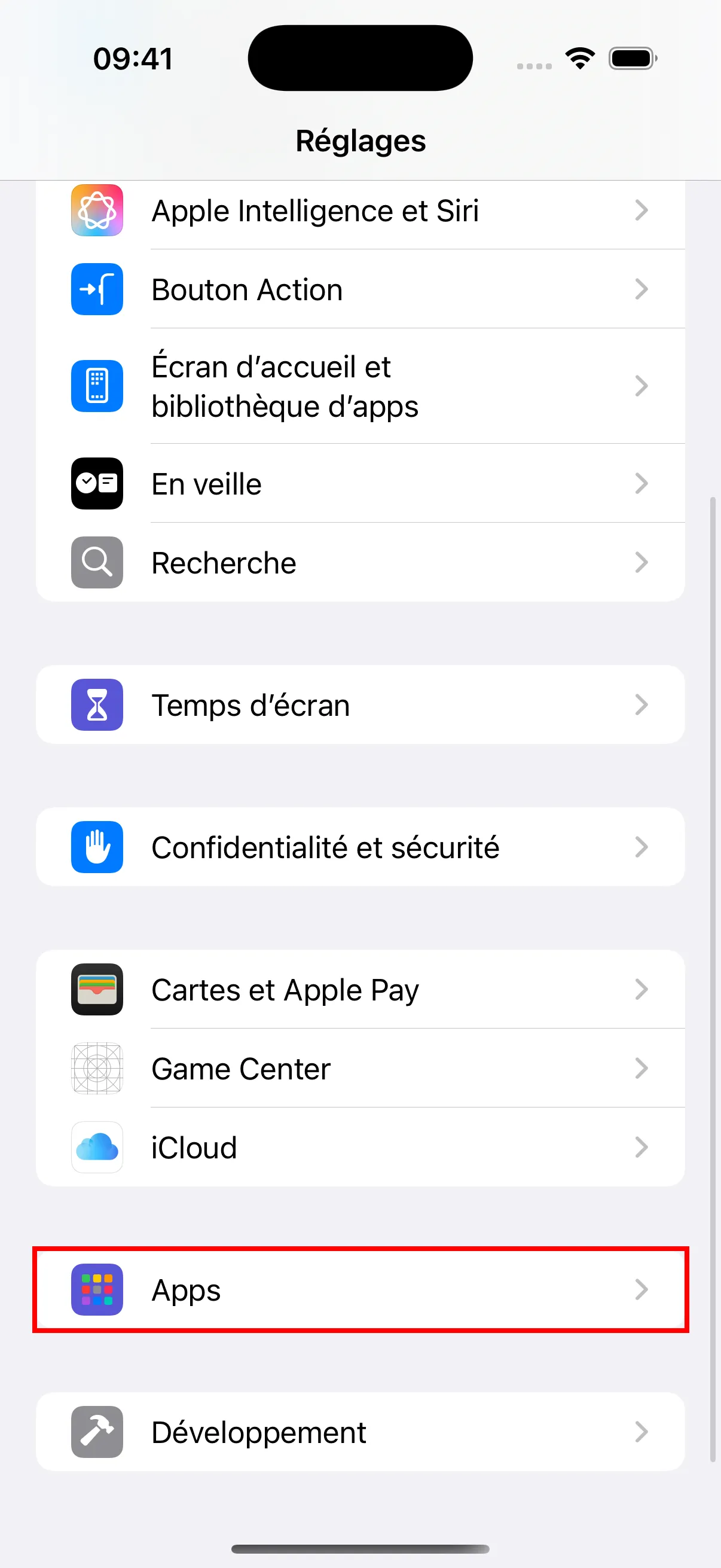 - Ouvrez l’application “Reglages” sur votre iPhone, faites defiler vers le bas pour trouver “Apps” et appuyez pour entrer.