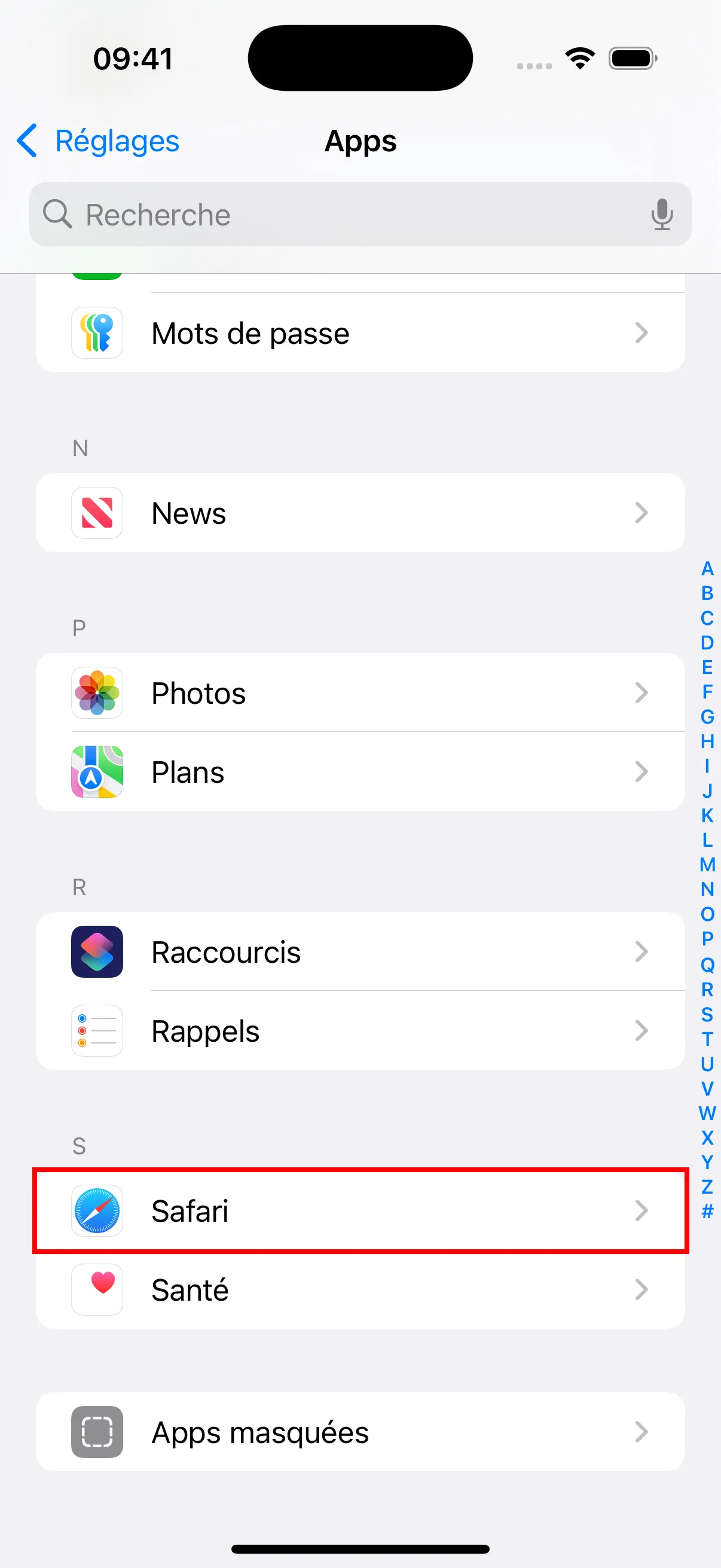 - Trouvez et appuyez sur “Safari” dans la liste des applications.