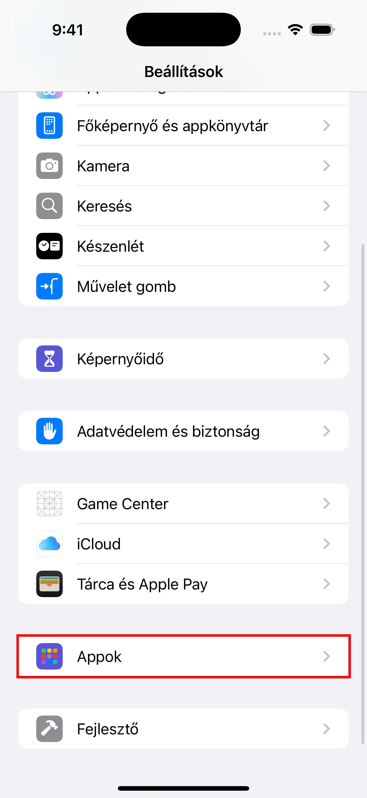 - Nyissa meg a “Beállítások” alkalmazást az iPhone-ján, görgessen le az “Appok” megtalálásához és koppintson rá.