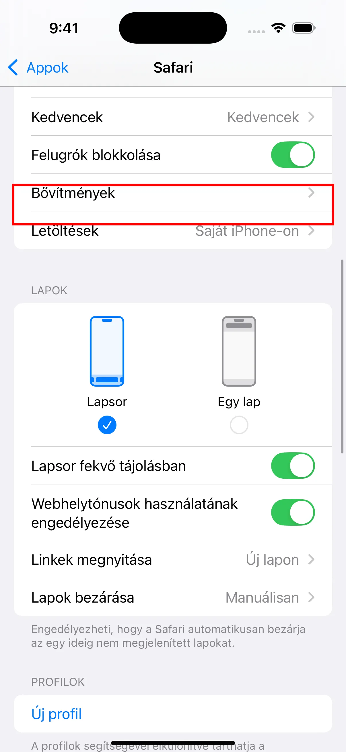 - Menjen vissza a Safari beállításokhoz, koppintson a “Bővítmények” elemre.