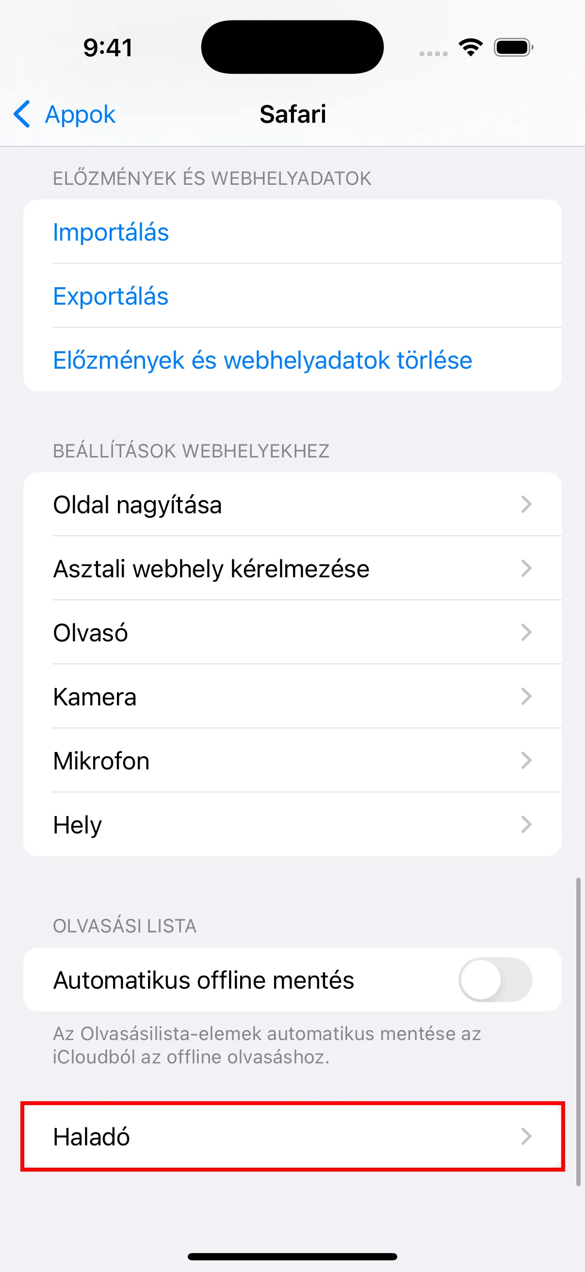 - Görgessen le az aljára és koppintson a “Haladó” elemre a speciális beállítások megnyitásához.