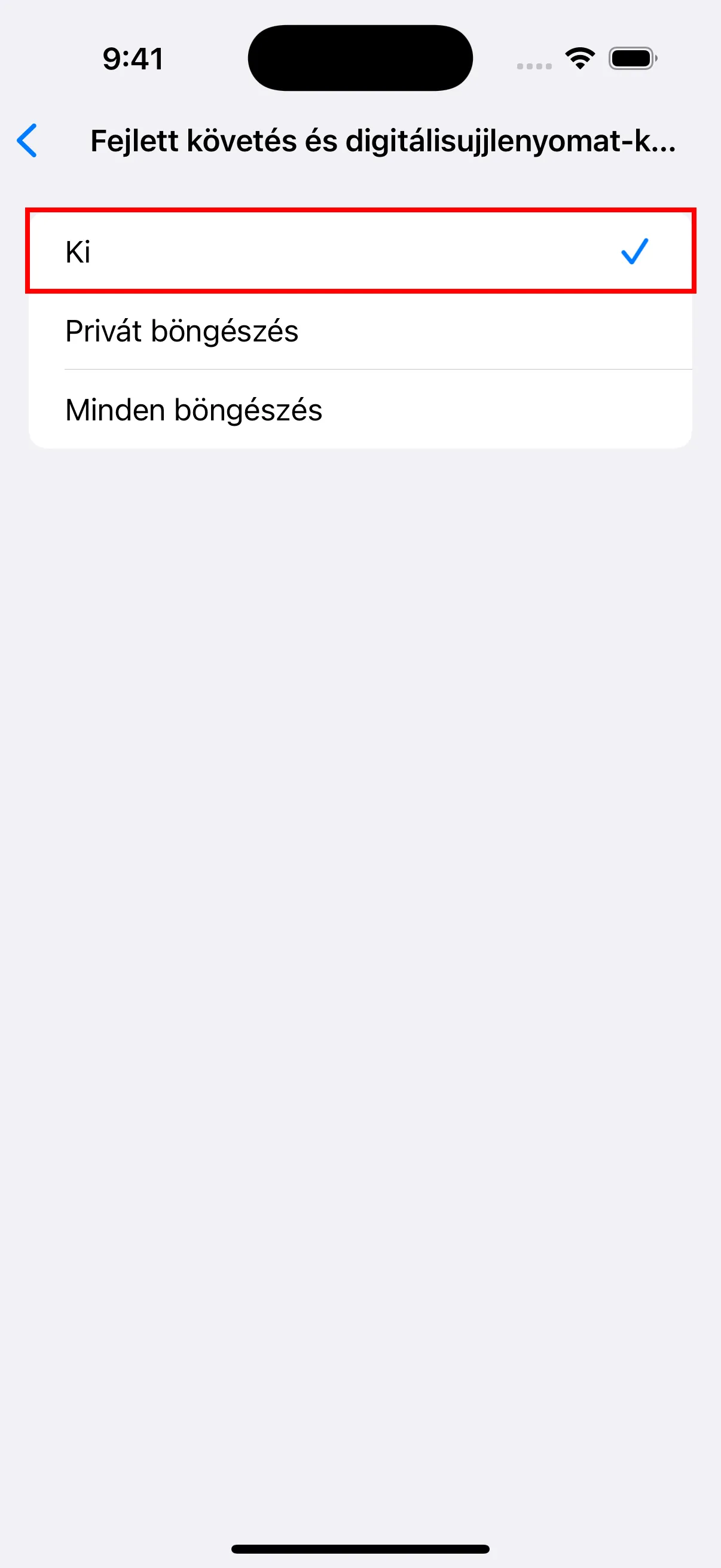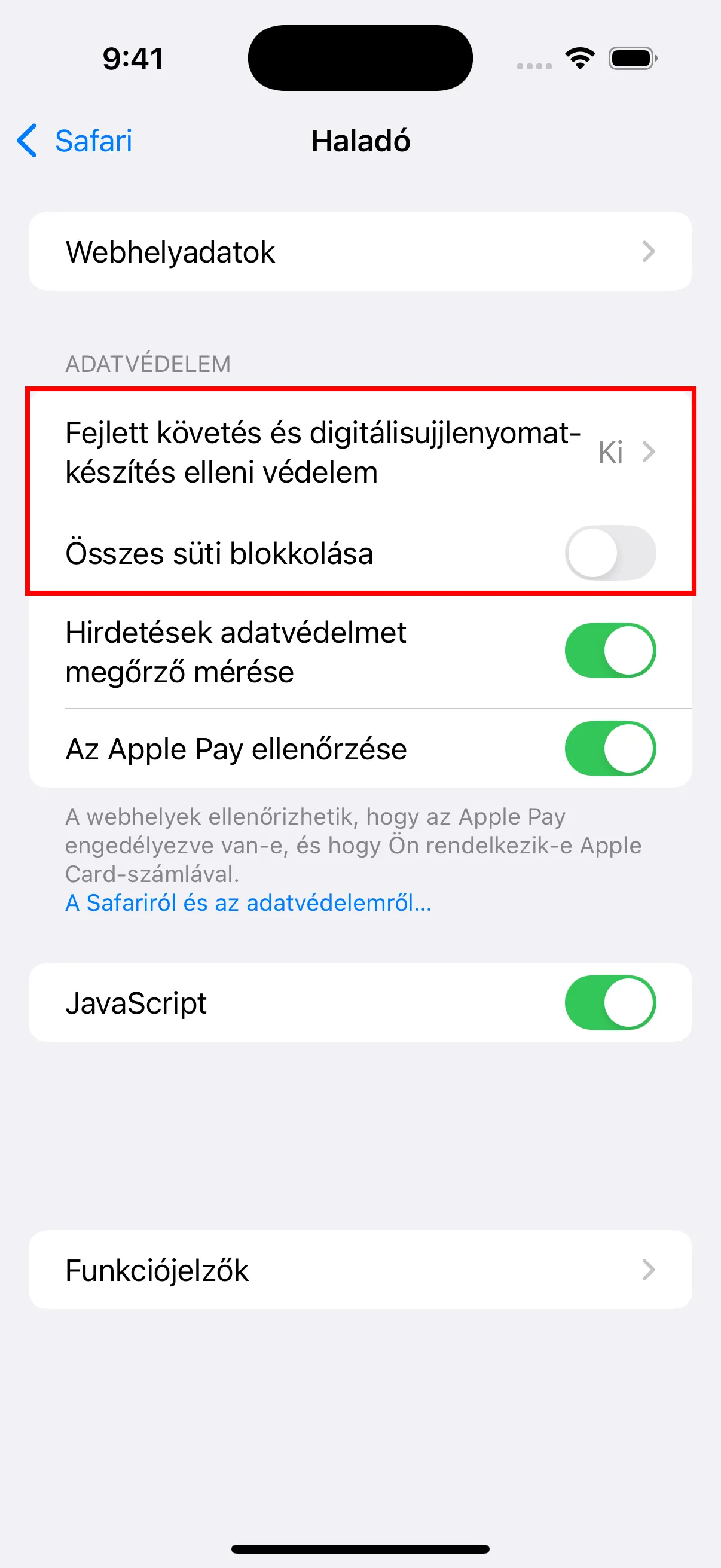 - A Haladó beállításokban koppintson a “Fejlett követés és digitálisujjlenyomat-készítés elleni védelem” elemre és állítsa Ki értékre. Győződjön meg arról is, hogy az “Összes süti blokkolása” ki van kapcsolva.