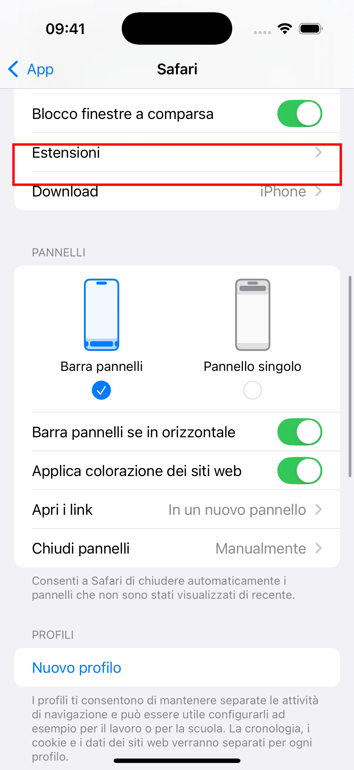 - Torna alle impostazioni di Safari, tocca “Estensioni.”