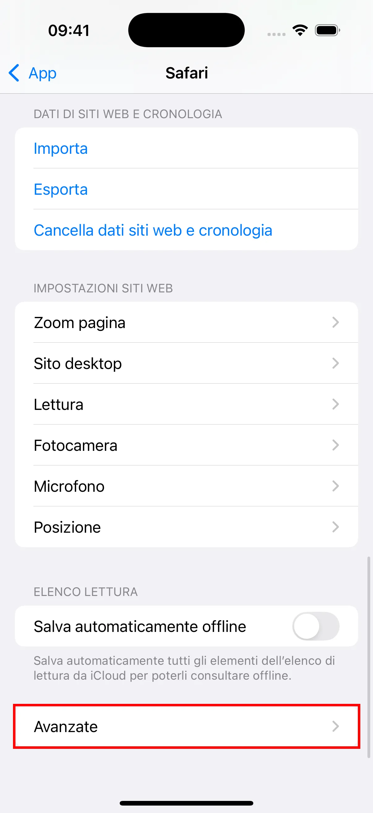 - Scorri fino in fondo e tocca “Avanzate” per accedere alle impostazioni avanzate.