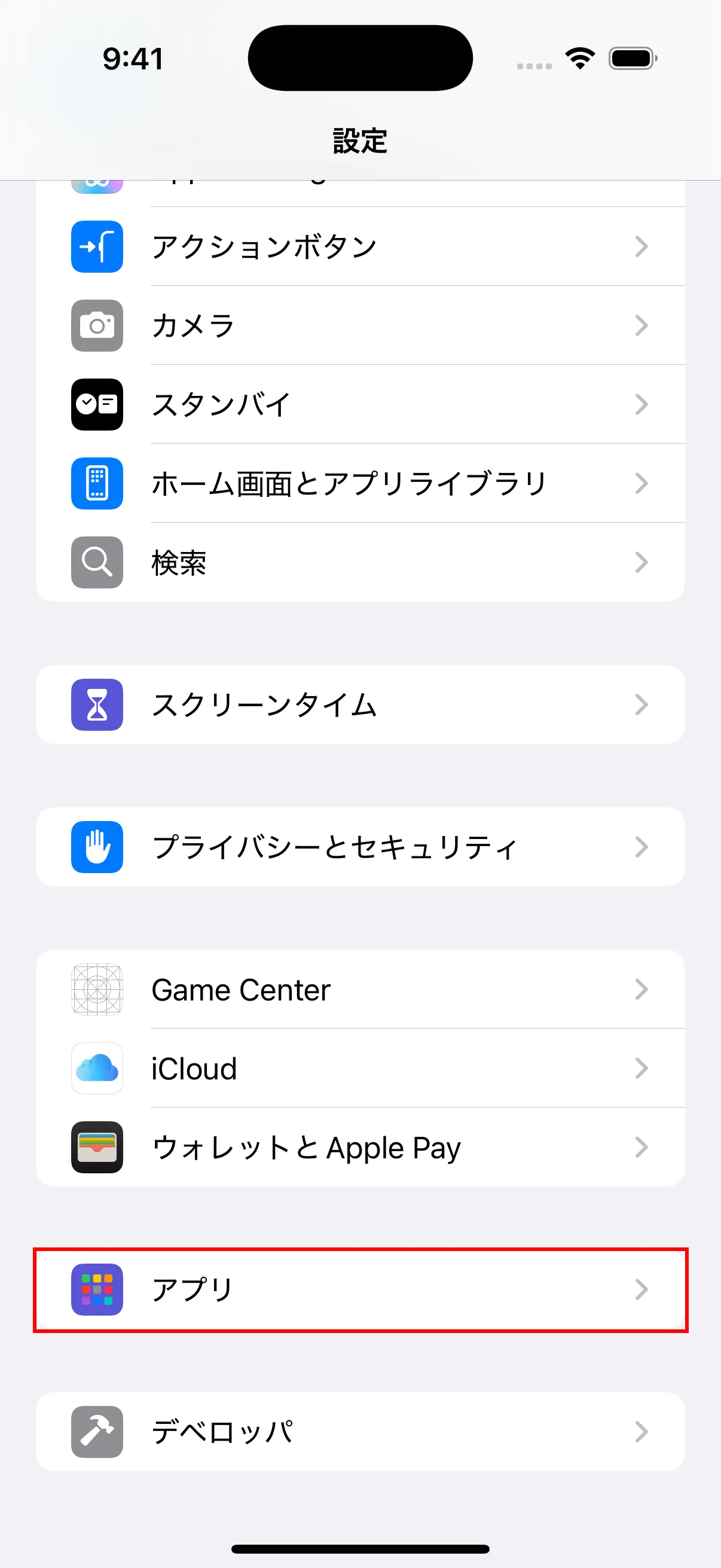 - iPhoneで「設定」アプリを開き、下にスクロールして「アプリ」を見つけてタップします。