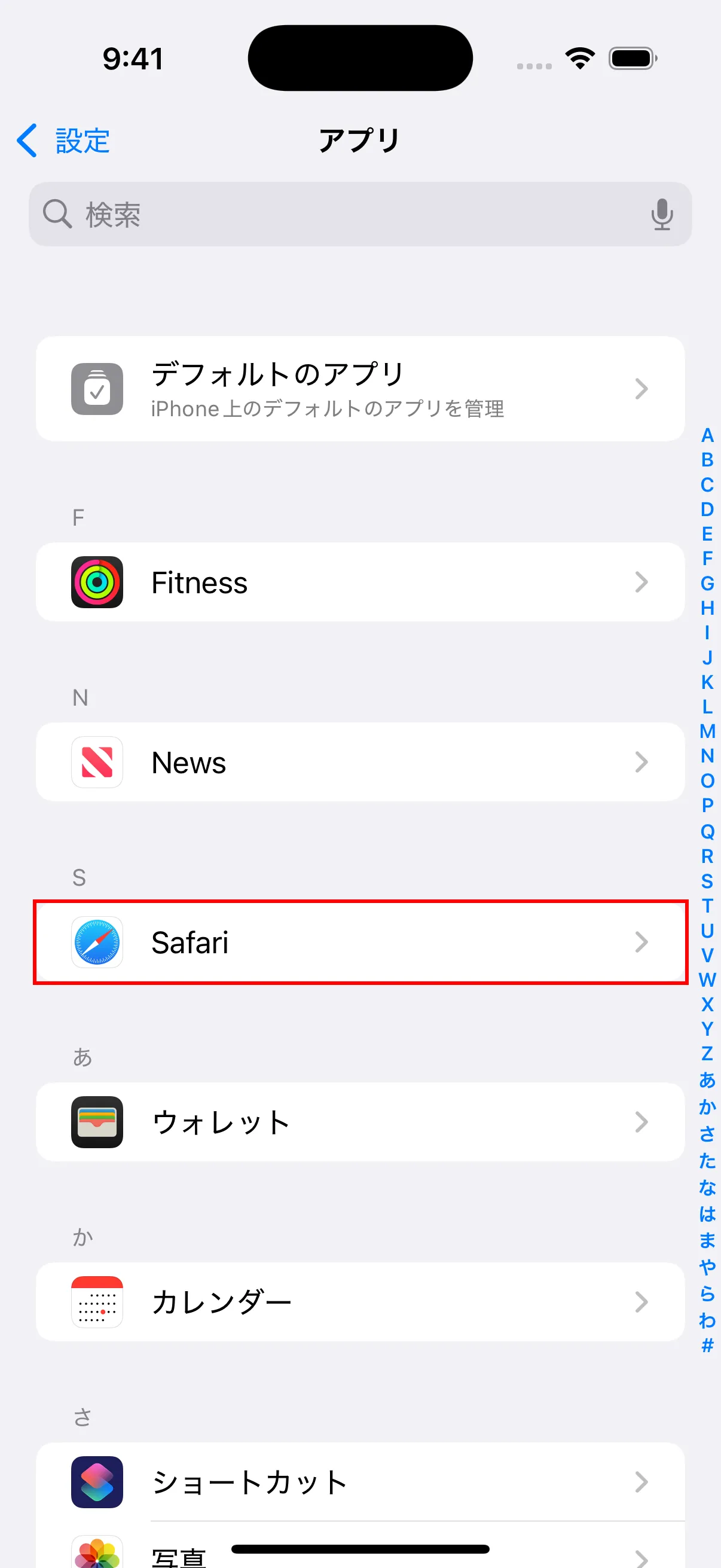 - アプリ一覧から「Safari」を見つけてタップします。
