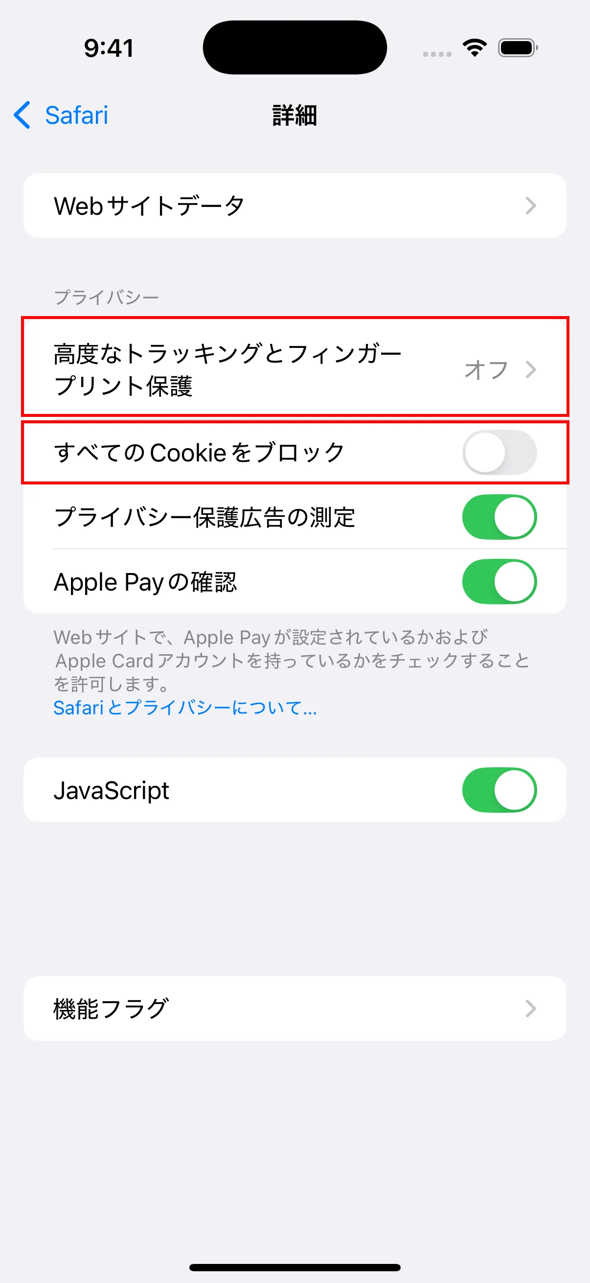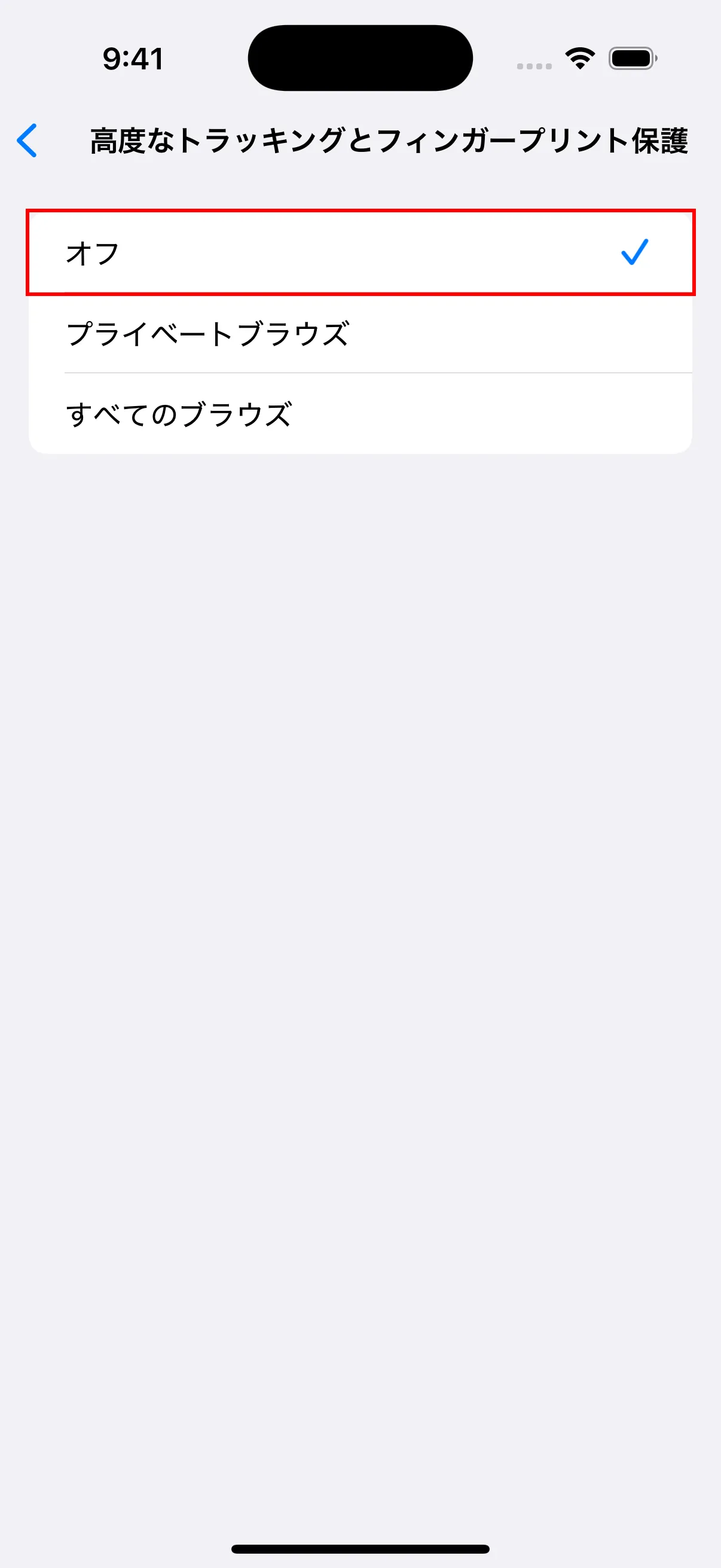 - 詳細設定で「高度なトラッキングとフィンガープリント保護」をタップし、オフに設定します。また「すべてのCookieをブロック」がオフになっていることを確認してください。