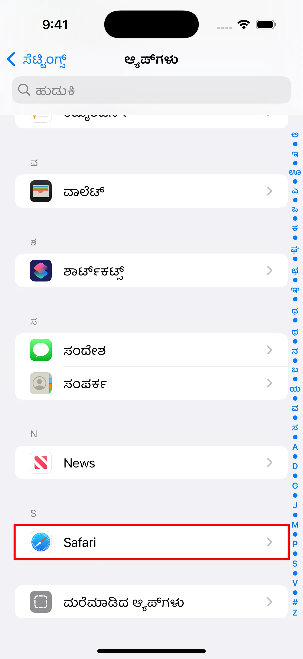 - ಆ್ಯಪ್ಗಳ ಪಟ್ಟಿಯಲ್ಲಿ “Safari” ಹುಡುಕಿ ಮತ್ತು ಟ್ಯಾಪ್ ಮಾಡಿ.