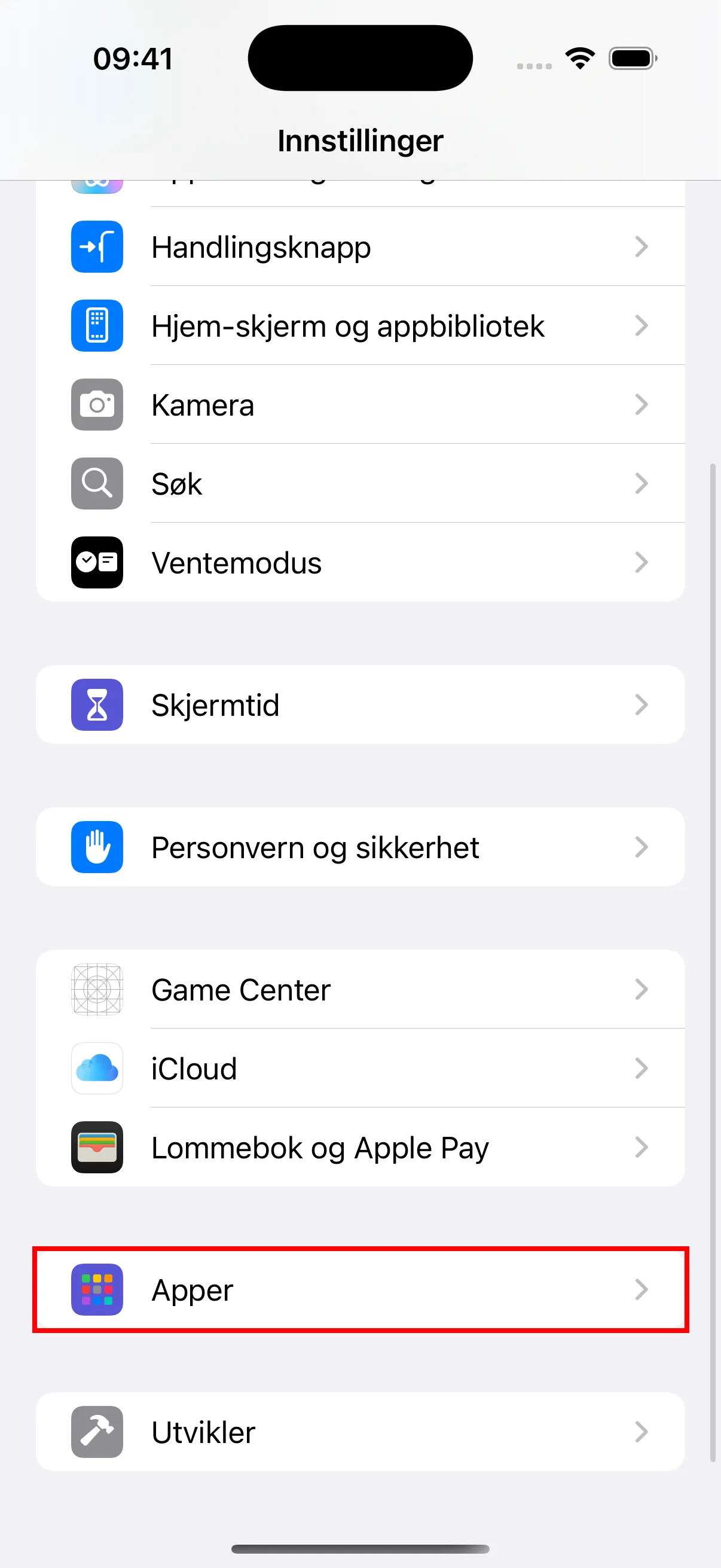 - Åpne “Innstillinger”-appen på iPhonen din, bla ned for å finne “Apper” og trykk for å gå inn.