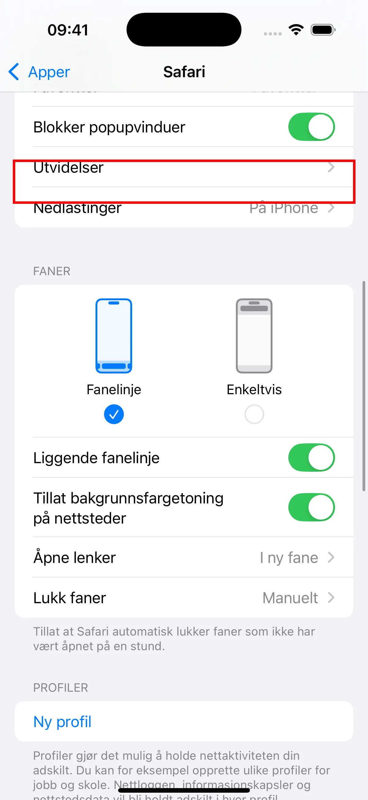 - Gå tilbake til Safari-innstillingene og trykk på “Utvidelser.”