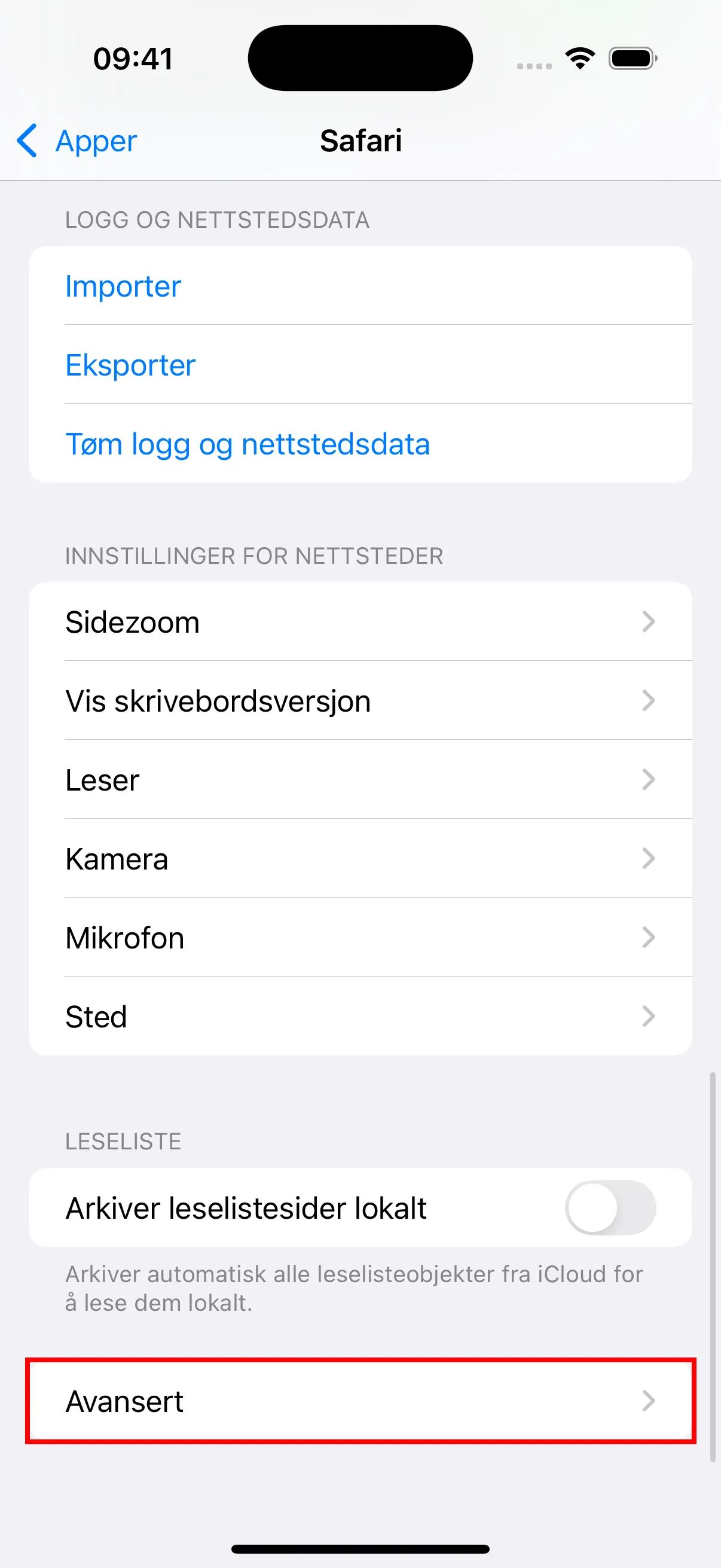 - Bla ned til bunnen og trykk på “Avansert” for å gå inn i avanserte innstillinger.