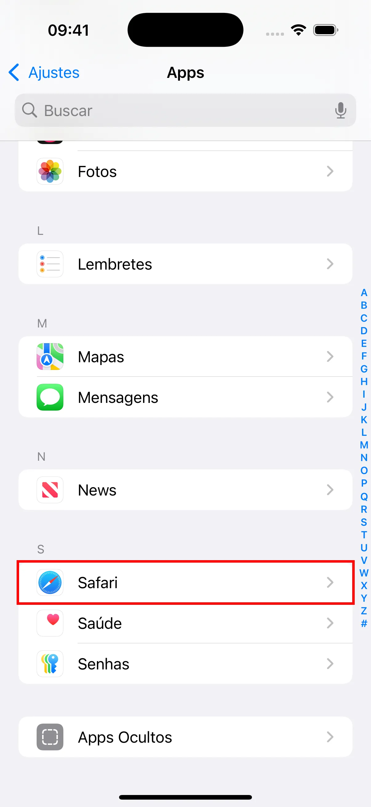 - Encontre e toque em “Safari” na lista de aplicativos.