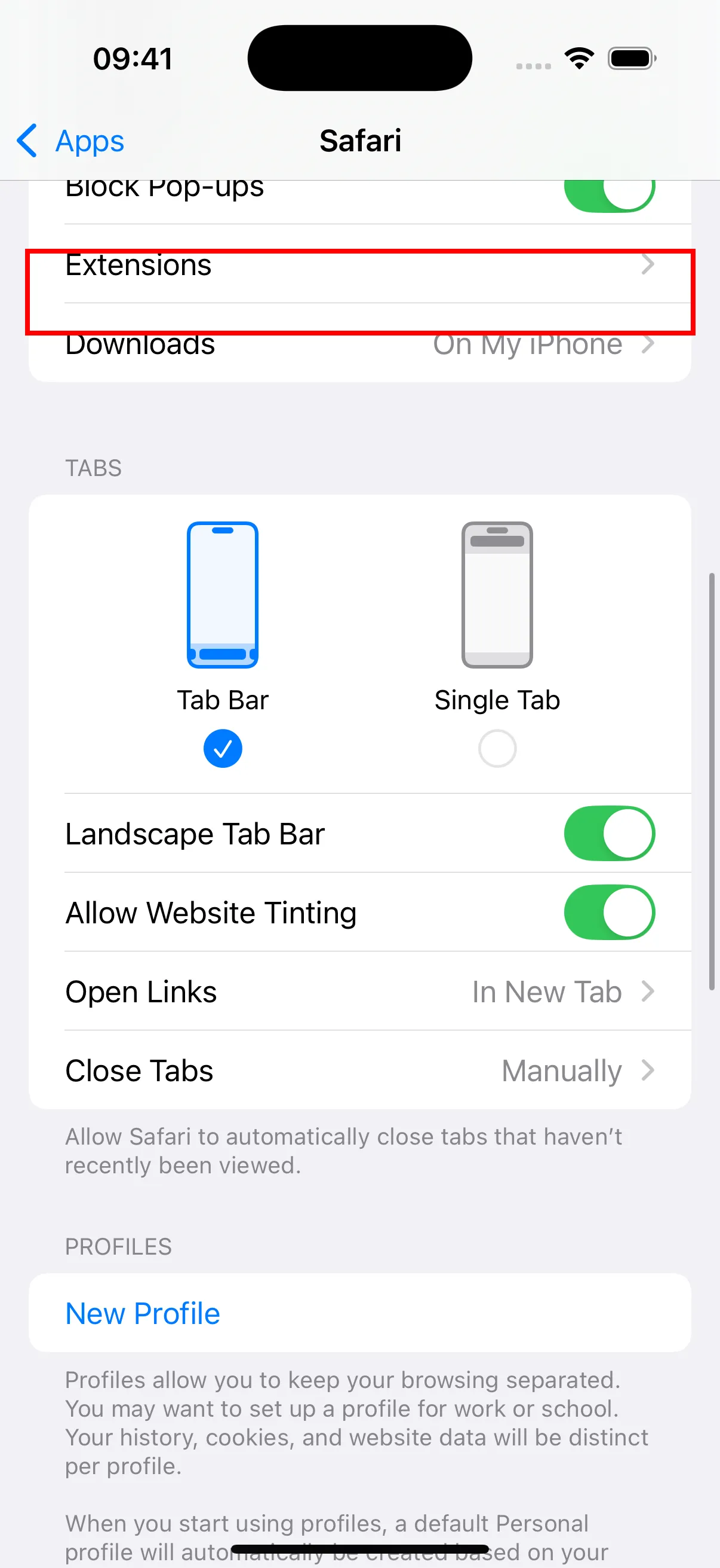 - Vratite se u podešavanja Safari, tapnite „Proširenja.”