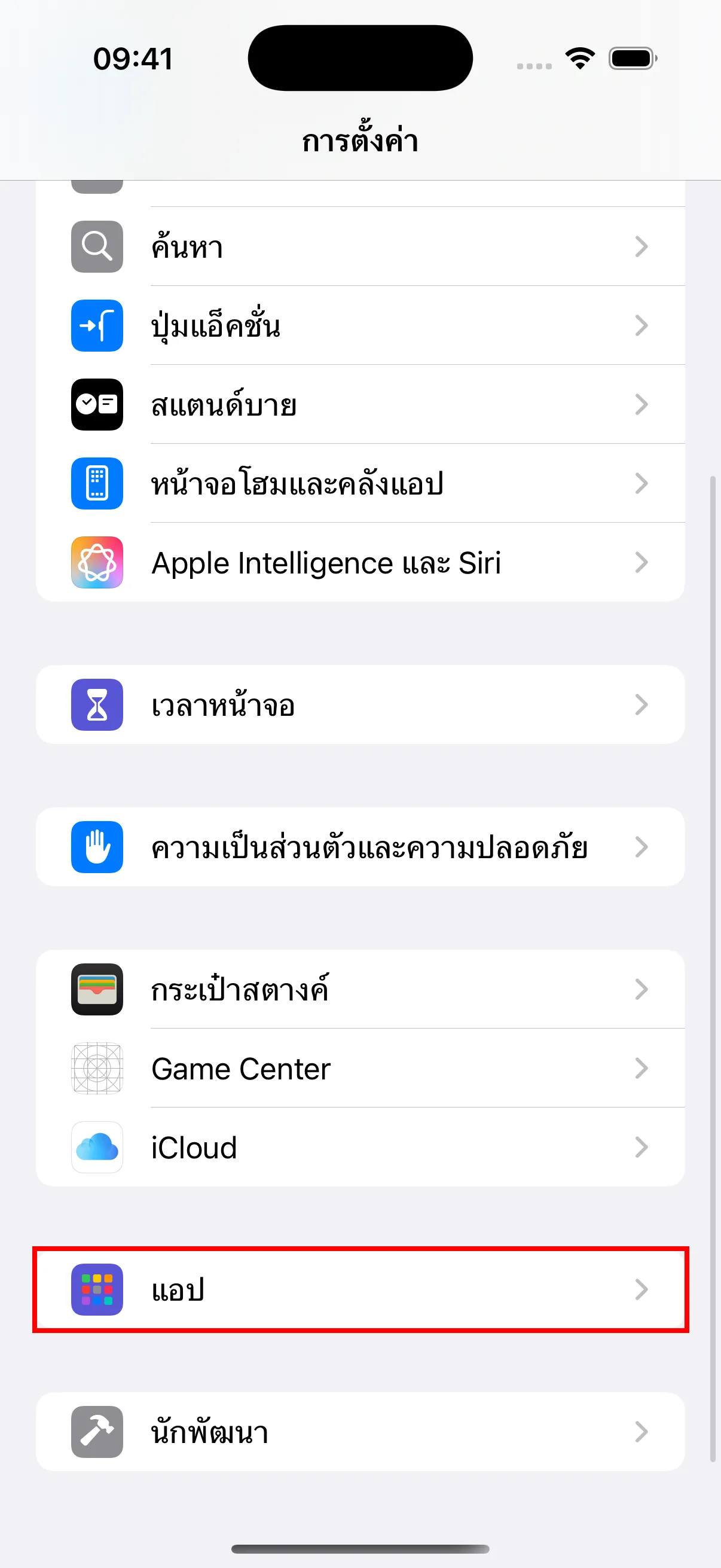 - เปิดแอป “การตั้งค่า” บน iPhone ของคุณ เลื่อนลงหา “แอป” แล้วแตะเพื่อเข้า