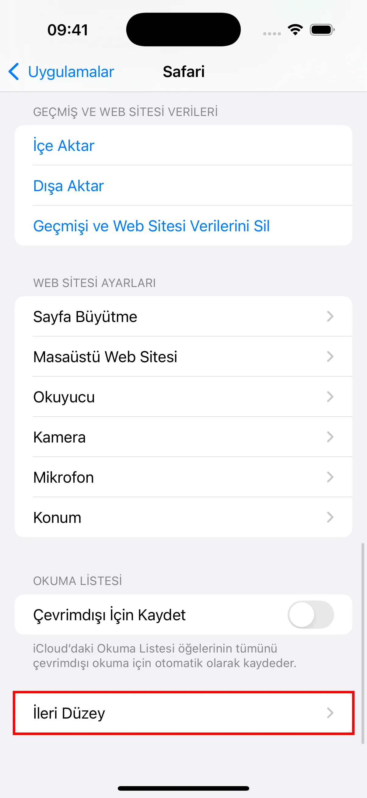 - En alta kaydırın ve İleri Düzey ayarlara girmek için “İleri Düzey” seçeneğine dokunun.