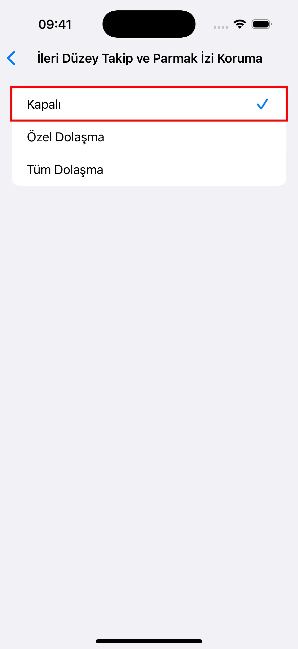 - İleri Düzey ayarlarda, “İleri Düzey Takip ve Parmak İzi Koruma” seçeneğine dokunun ve Kapalı olarak ayarlayın. Ayrıca “Tüm Çerezleri Engelle” seçeneğinin kapalı olduğundan emin olun.